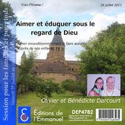 Série de 3. Session des Familles et pour tous Paray-le-Monial, du 27 juillet au 1er août 2013 Parcours Aimer et éduquer sous le regard de Dieu Enregistré les 28, 29 et 31 juillet 2013 Depuis 1975, lors des Sessions d'été de Paray-le-Monial, la Communauté de l'Emmanuel se met au service de tous ceux qui désirent faire cette expérience du Coeur. Aujourd'hui encore, le Coeur de Jésus veut manifester sa miséricorde à tous les hommes. Info Sessions : 03 85 81 56 00 par internet : www.emmanuel.infoIntervenant(s) : Olivier et Bénédicte Darcourt, et Bruno et Isabelle Drumare Format :MP3 64Kbps Mono Taille : 78.8Mo en 3 fichiers Durée cumulée : 2h52mn