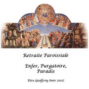 Voici une retraite paroissiale sur le jugement dernier... Rien voir avec le Jansnisme bien au contraire ! Il s'agit d'un triptique très interpelant sur la vie éternelle, celle que nous préparons dès ici bas. Cet enseignement est en trois volets : - Enfer - Purgatoire - ParadisIntervenant(s) : P.Geoffroy de la Tousche, Diocèse de Rouen Format :MP3 64Kbps Mono Taille : 29.8Mo Durée : 1h05mn