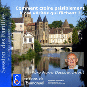 Série de 3. Session famille 1 (du 28 juillet au 2 août 2012) Parcours Comment croire paisiblement à ces vérités qui fachent Depuis 1975, lors des Sessions d'été de Paray-le-Monial, la Communauté de l'Emmanuel se met au service de tous ceux qui désirent faire cette expérience du Coeur. Aujourd'hui encore, le Coeur de Jésus veut manifester sa miséricorde à tous les hommes. Info Sessions : 03 85 81 56 00 par internet : www.emmanuel.infoIntervenant(s) : P.Pierre Descouvemont, Diocèse de Cambrai Format :MP3 64Kbps Mono Taille : 107.6Mo en 3 fichiers Durée cumulée : 3h54mn
