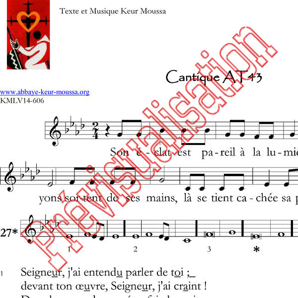 Usage : LiturgieCritères liturgiques : Temps Ordinaire - Vendredi - Laudes - Cantique Ancien Testament ATRéf dans le recueil : AC308PRRéf CD : CD KM 14Année d'édition : 1996Format :Fichier PDF Taille : 297Ko en 1 fichiers